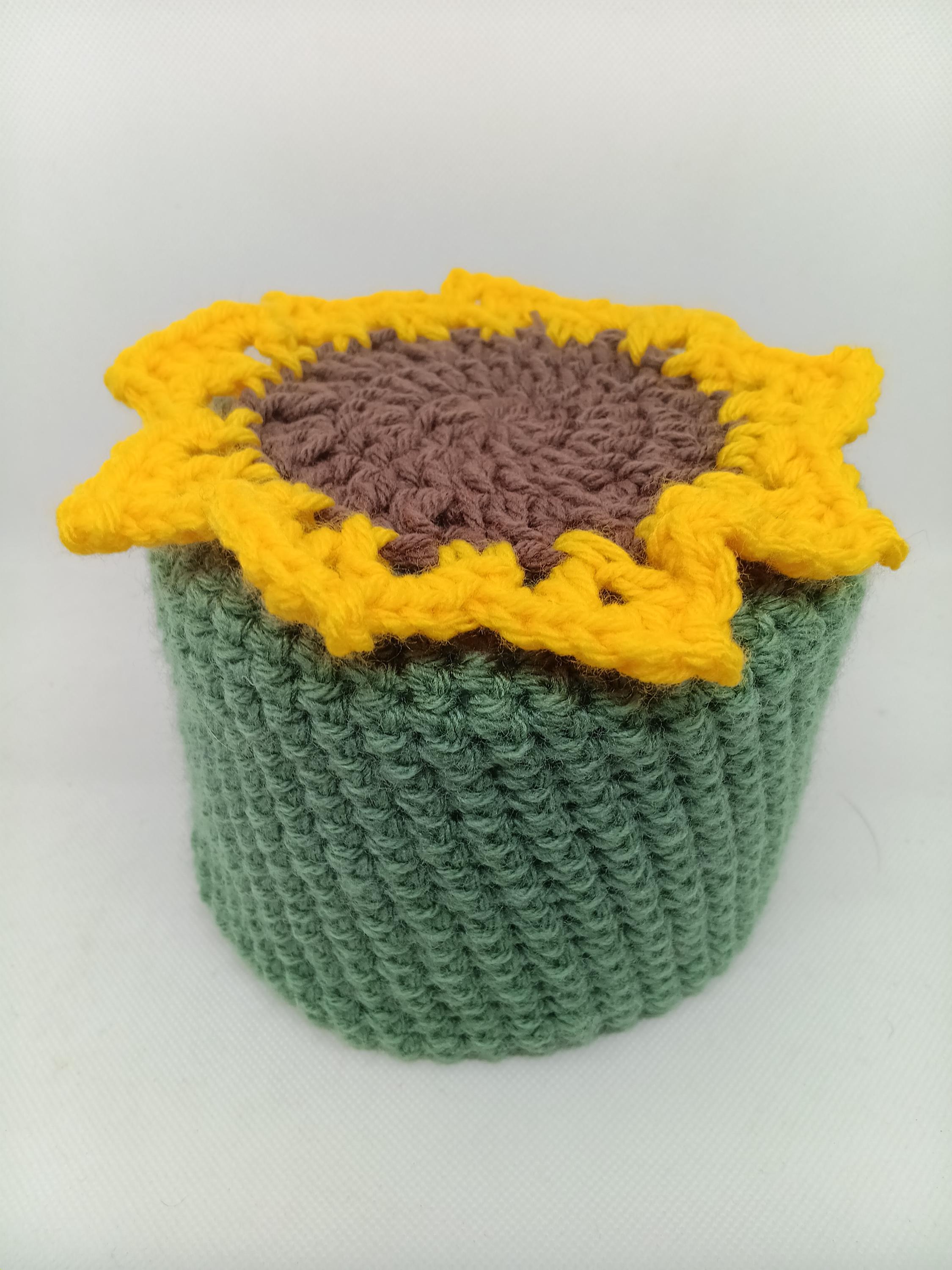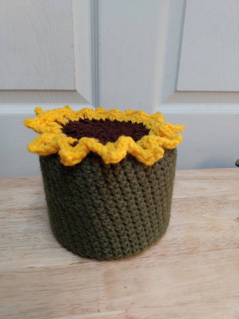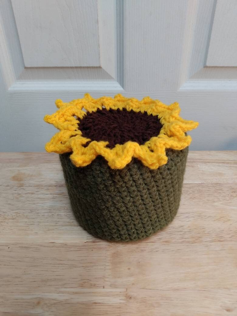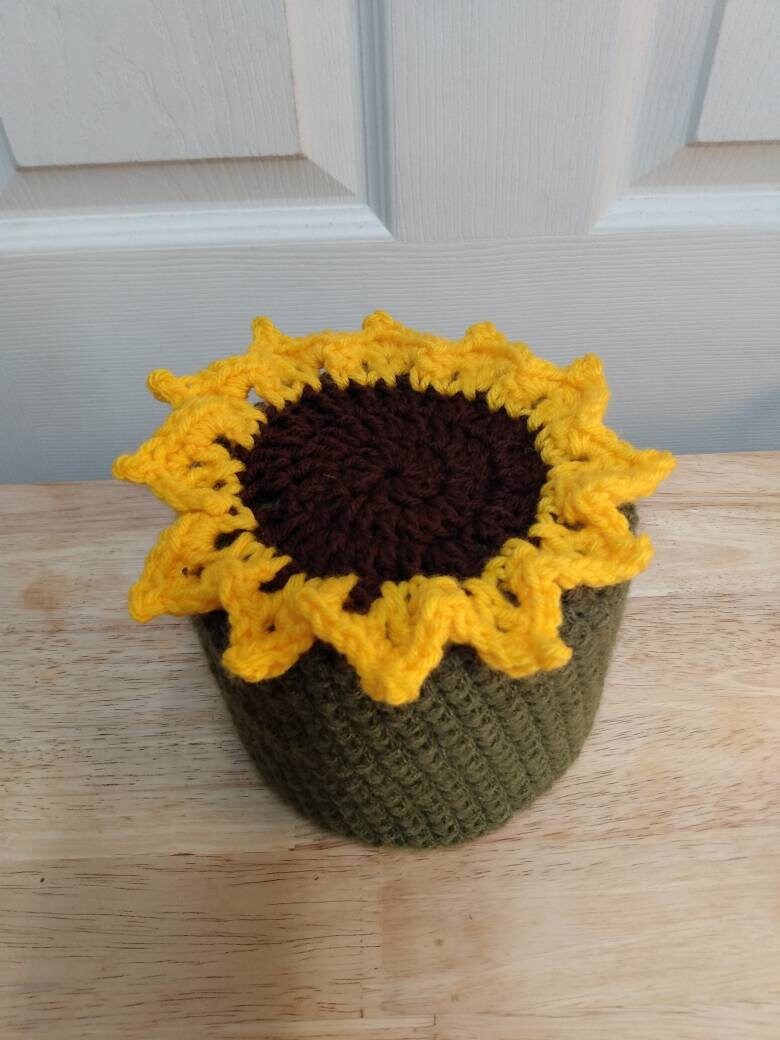 This Blooming Sunflower Toilet Paper Cover will keep that extra roll of TP handy while hid and add a touch of fall to any decor. Modeled on a mega size roll.