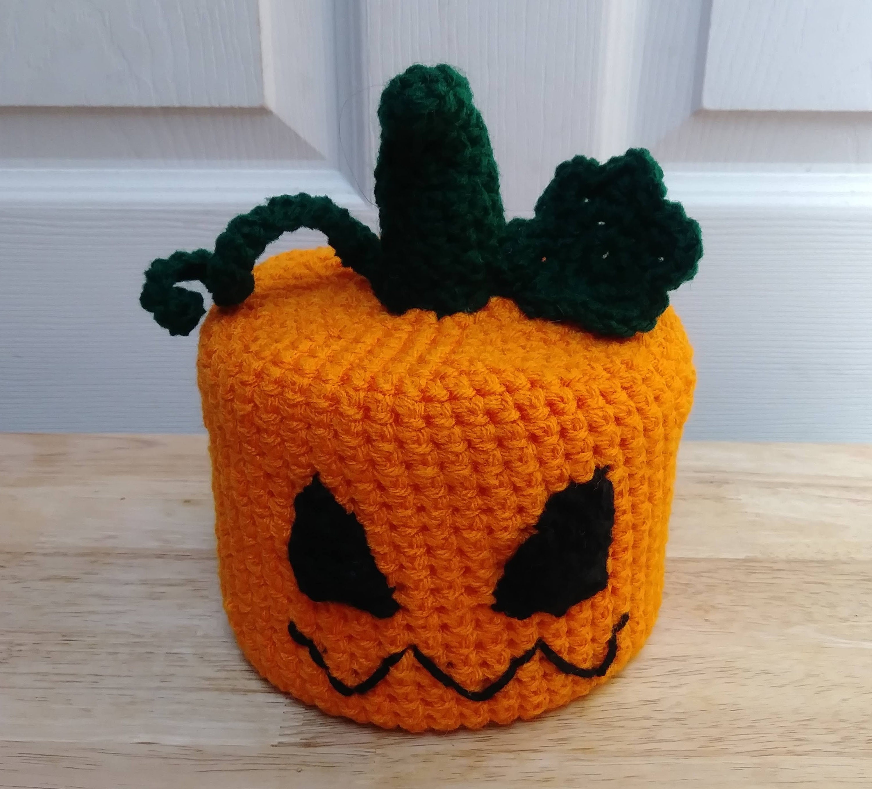 Hide an extra roll of toilet paper in this Jack-O-Lantern to bring some Halloween to any bathroom decor. Or turn it around to show it as a pumpkin if you prefer. Modeled on mega size roll of toilet paper. We offer a variety of fun and useful hand crocheted items which includes a large assortment of toilet paper covers. Please use the link to WandasHandmadeStore to view items currently available. Since we are not able to have all items available at all times, we encourage you to message us or use the link to “Request a Custom Order”.