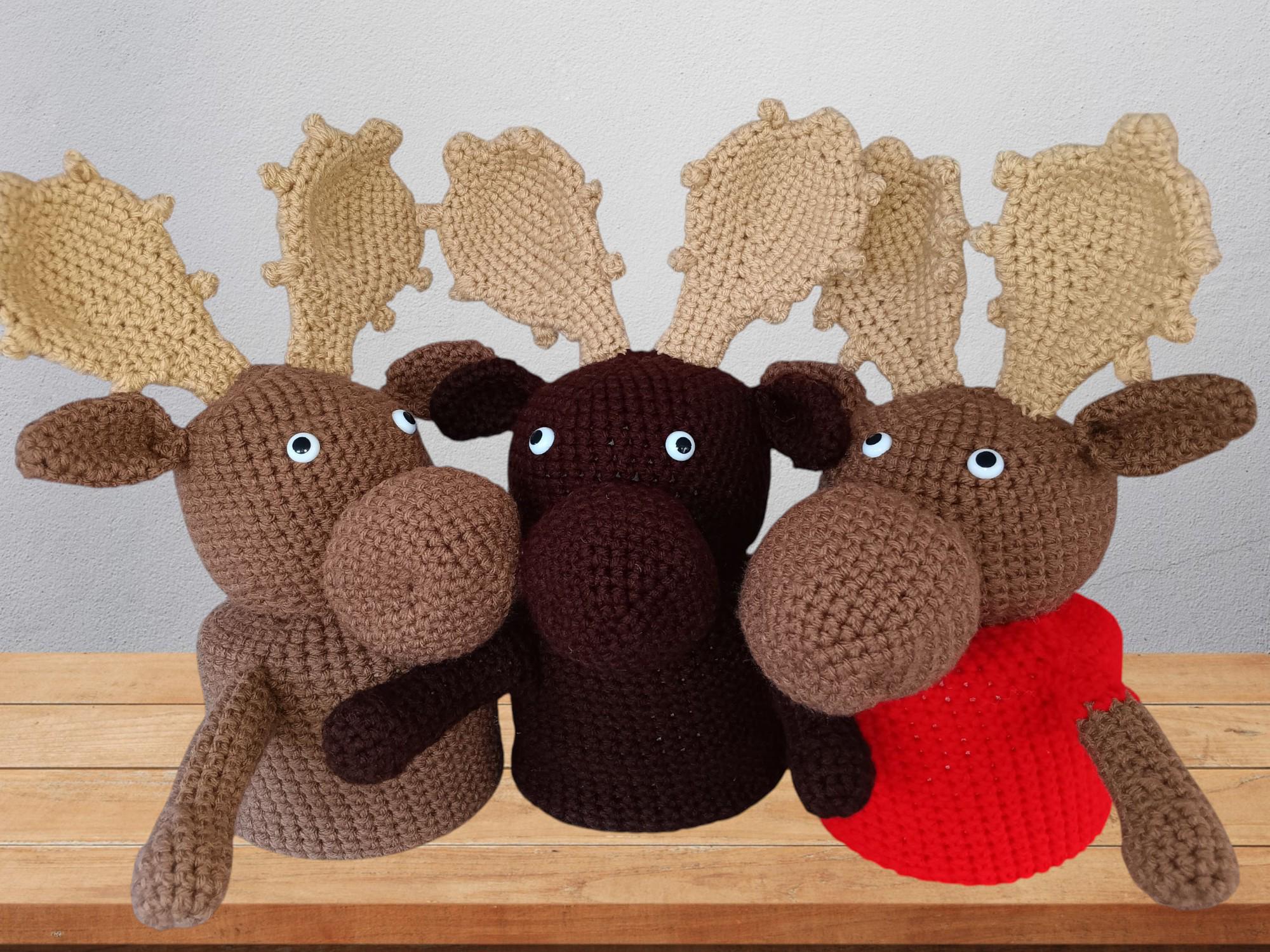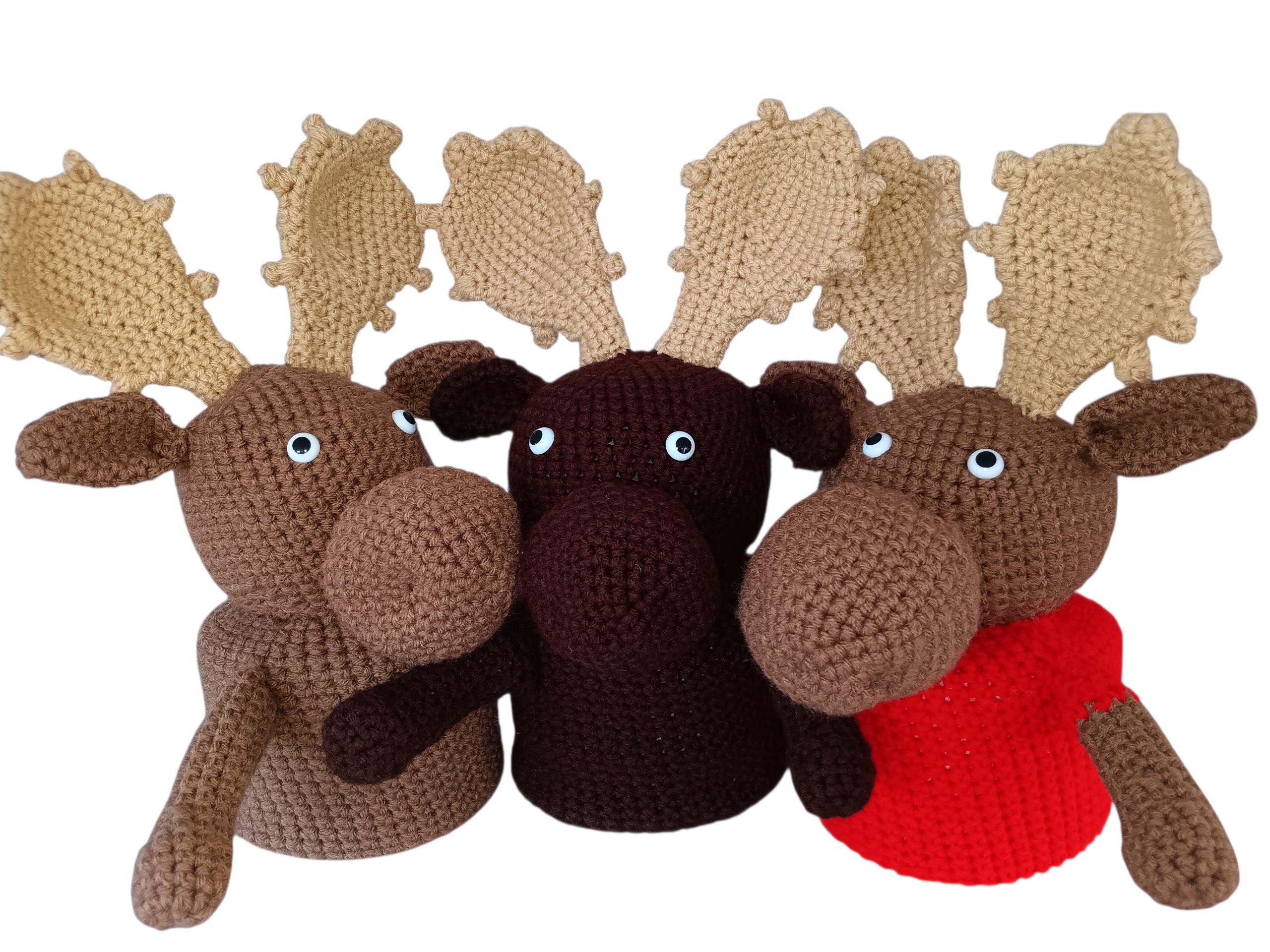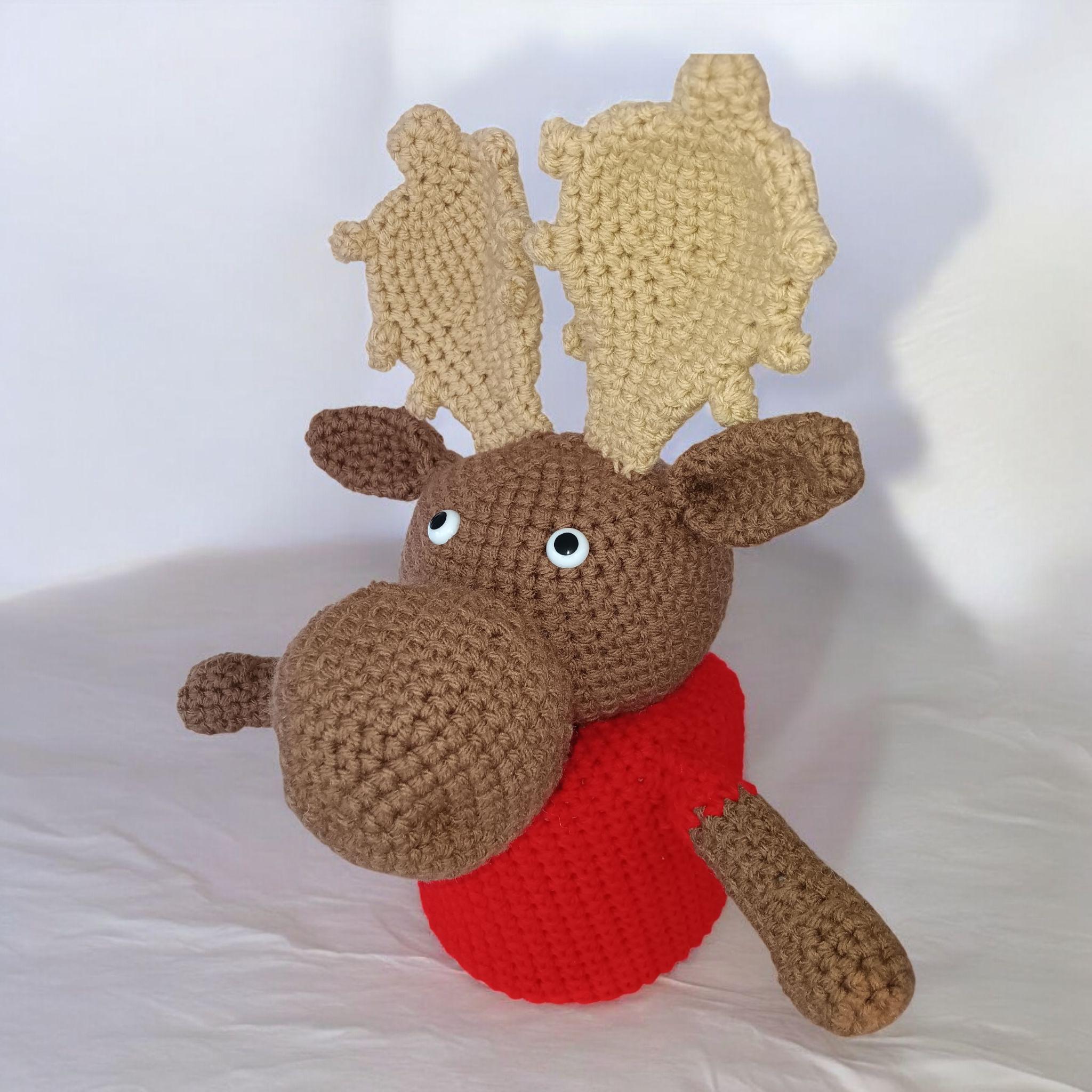 Hide that precious spare roll of toilet paper in this hand crocheted moose bathroom accessory. Toilet paper cover is modeled on mega size roll.